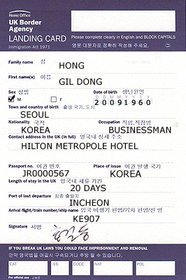 1. ÀÔ±¹½Å°í¼ ÀÛ¼º(Landing Card)